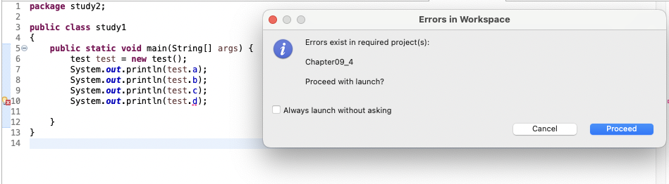 | protected | 프로텍티드. 같은 패키지 내부와 상속 관계의 클래스에서만 접근 가능합니다. |
