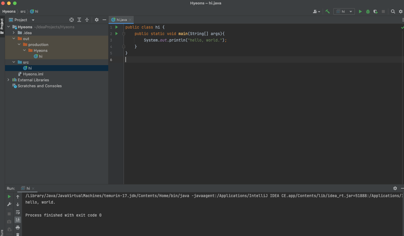 이렇게 가장 기본이 되는 문장까지 완료하여 개발의 시작 “Hello World”까지 띄워봤습니다.